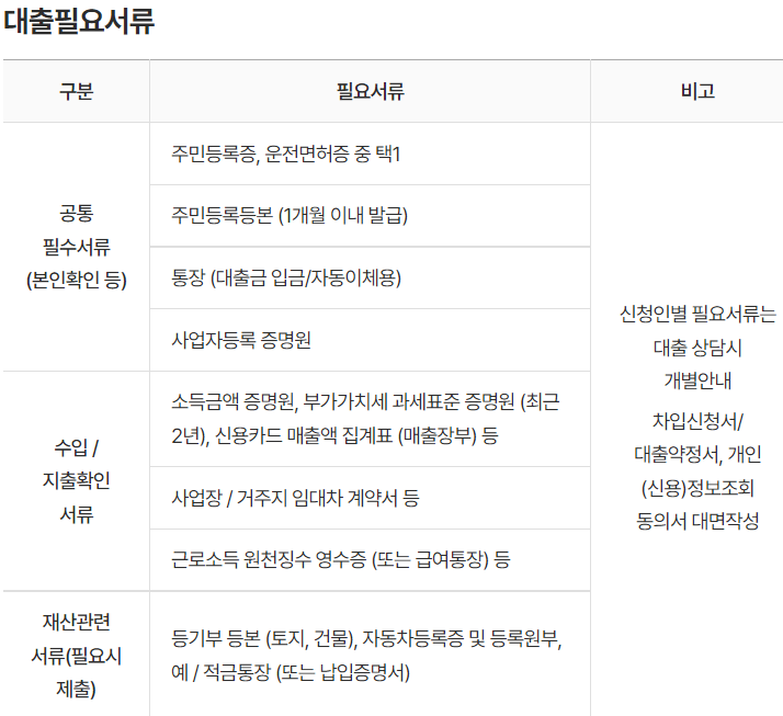 단 대출 필요서류는 참고만 하시면 되며 실제로 신청해보는 것이 좋습니다.