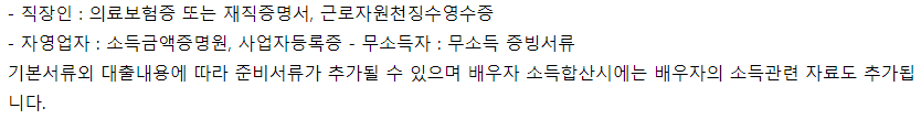 대출진행 시 필요한 서류는 아래와 같습니다.