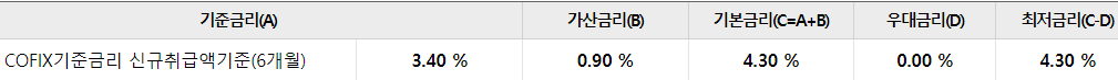 대출금리는 기준금리 + 가산금리를 적용하며 이 상품은 우대금리 조건이 없고 우대금리 또한 없는 상품입니다.