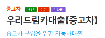 우리은행 중고차대출 상품의 이름은 우리드림카대출[중고차]이며 글 하단에는 여러 1금융권의 자동차대출 정보 및 중고차 매매사이트에 대한 정보도 남겨두었으니 이 부분 참고 하시길 바랍니다.