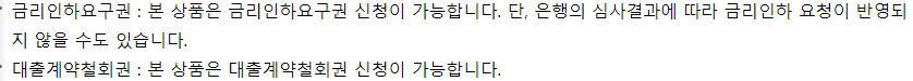 일부 우대금리 항목은 우대조건 충족여부에 따라 매월 재산정되어 적용되는 점 참고 하시길 바라며 세부 우대조건은 우리은행 영업점 대출 담당자 및 고객센터를 통해 확인 하실 수 있습니다.
