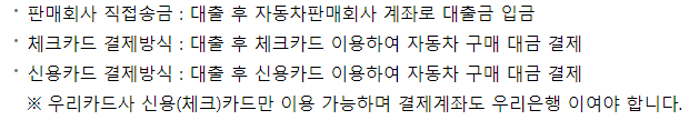 우리은행 우리드림카대출[신차] 기타사항 및 신청방법