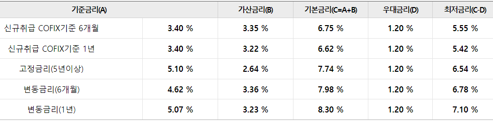 대출금리는 기준금리에 따라 아래와 같이 달라지므로 참고 하시길 바랍니다.