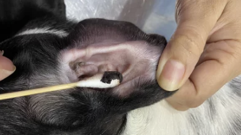 - 강아지가 흔들게 두고, 면봉 대신 거즈나 화장솜으로 겉면만 닦아줌
