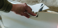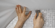 시트지 끝부분 살짝 들춰줍니다 - 천천히 45도 각도로 잡아당기기, 빠르게 당기면 더 잘 붙음