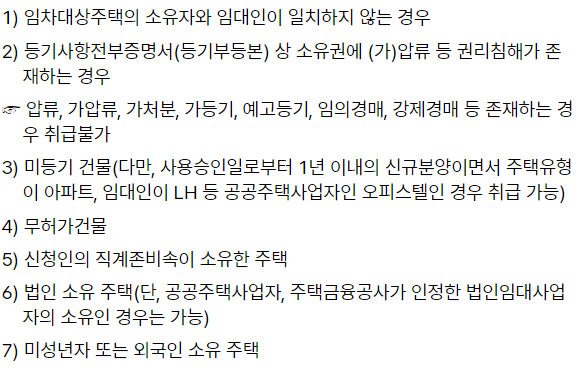 단 아래의 사항에 해당 하면 그 주택에 대한 대출은 실행 불가합니다.
