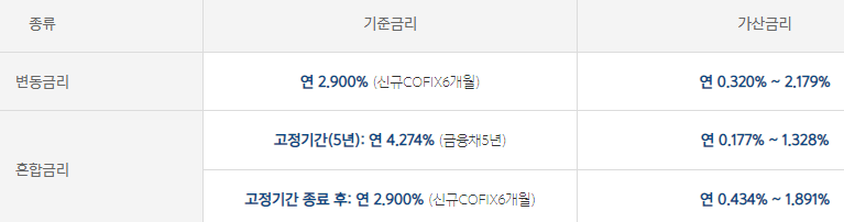 혼합금리 대출의 경우 연 4.451% ~ 5.602%