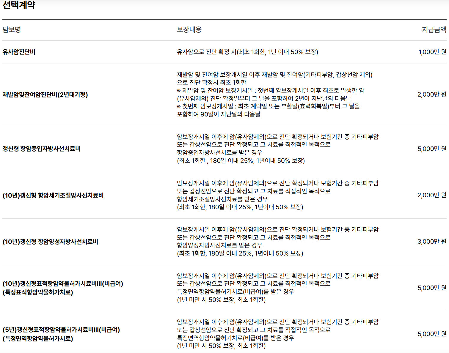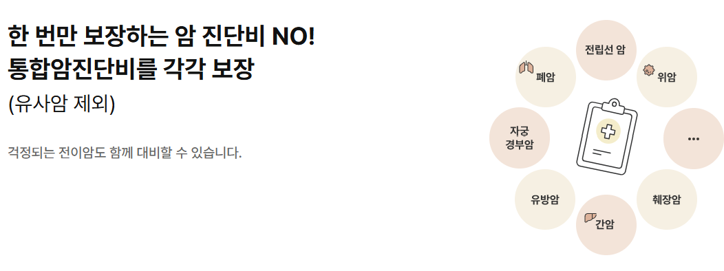 | 진단 시 일시금 | 없음 | 일반암 5천만 원 등 지급 |