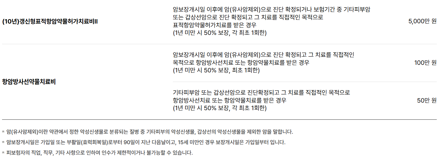 | 면역항암치료특약 | 면역항암제 투여 시 일정 보험금 지급 |