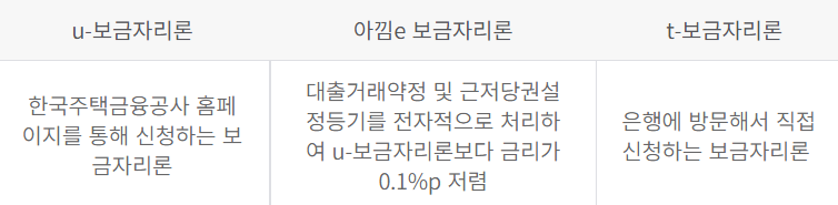 우선 자격을 설명드리기전에 보금자리론은 3가지로 나뉩니다.