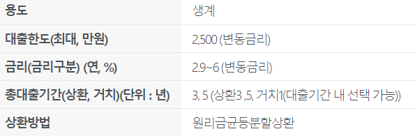 대출한도는 최대 2천5백만원까지 가능합니다.