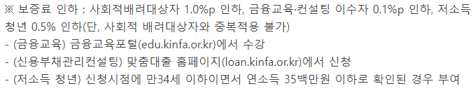 보증료도 인하가 가능한 상품으로 보증료 인하 자격은 아래와 같습니다.