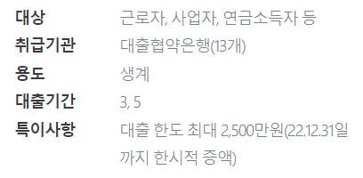 - 연소득 3천5백만원 이하(신용평점 무관) 또는 신용평점 하위 100분의 20에 해당하면서 연 소득 4천5백만원 이하여야 합니다.