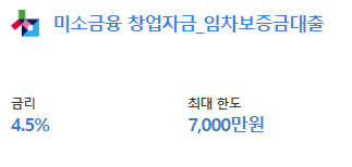 창업예정이신분들은 대출한도 7천만원 ,약정 이자율 4.5%를 적용합니다.