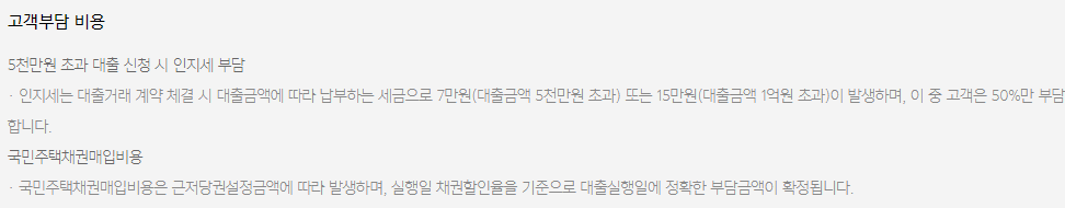 대출금액 5천만원 이하까지는 비과세이며 5천만원 초과 시 인지세 7만원, 1억원 초과 시 인지세 15만원 등 발생한 인지세는 은행과 고객이 각각 50%씩 부담하게 됩니다.