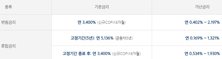 혼합금리 대출의 경우 최저 연 5.305% ~ 최고 연 6.457%