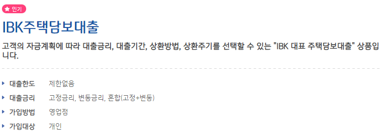 기업은행 아파트담보대출 정보