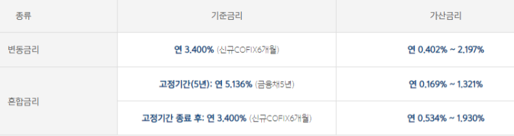혼합금리 대출 : 최저 연 5.305% ~ 6.457%