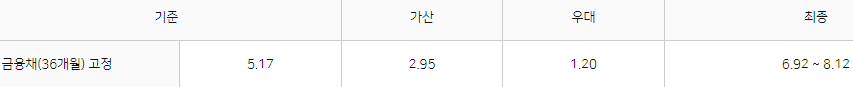 - 우량등급 우대(통신등급 1등급 ~ 3등급) 0.5%
