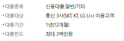 이 상품의 조건은 통신등급 산출이 가능한 통신 3사 (SKT,KT,LG U+) 이용고객으로 CB 1 ~ 6- 구간이면 누구나 신청이 가능합니다.