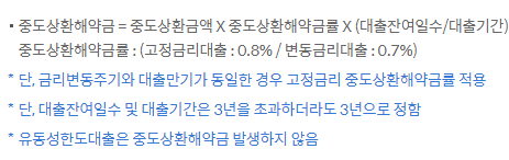 이 상품은 만기일시상환으로 만기일상환방법은 말 그대로 대출기간 동안 매월 이자만 납부하다가 만기일에 원금을 한번에 상환하는 방법입니다.