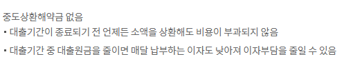 이 상품은 대출취급수수료 및 중도상환해약금이 없거나 면제입니다.