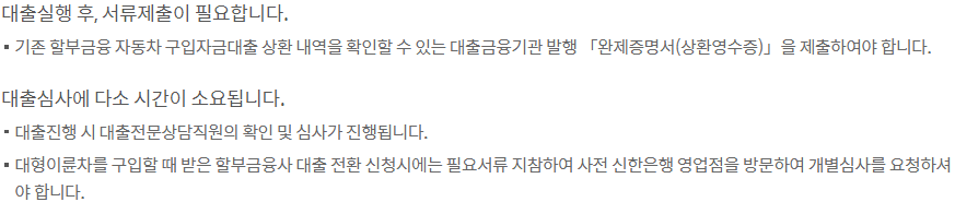 신한은행 자동차 대환대출 기타사항 및 신청방법
