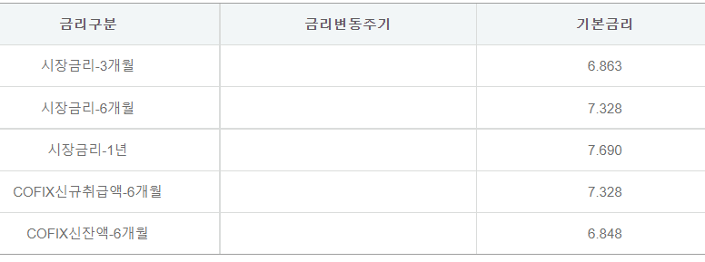 대출금리는 금리 구분에 따라 아래와 같이 달라집니다.