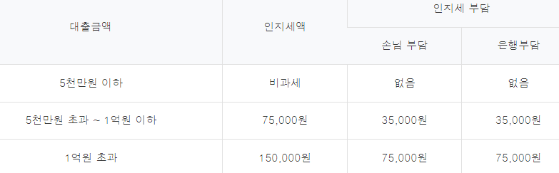 인지세란 대출 거래 약정 시 내는 세금으로 5천만원 이하까지는 비과세라 중고차 관련 자금은 인지세를 신경쓰지 않으셔도 되지만 신차 관련 자금의 경우 5천만원을 초과하면 7만원의 인지세를 은행과 고객이 각각 50%씩 부담하게 됩니다.