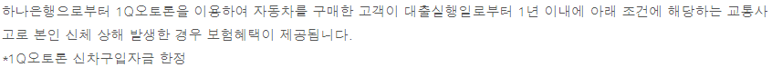 하나은행 1Q오토론 상품 가입 시 보험혜택