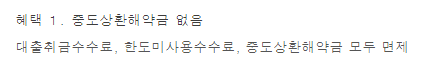 이 상품은 모든 수수료가 면제여서 대출을 진행하고 나서 사용하다가 여유자금이 생긴다면 대출을 갚아두어 이자비용을 아낄 수 있습니다.