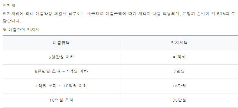 인지세는 대출 신규 약정 시 내는 세금으로 5천만원 이하까지는 비과세여서 없습니다.