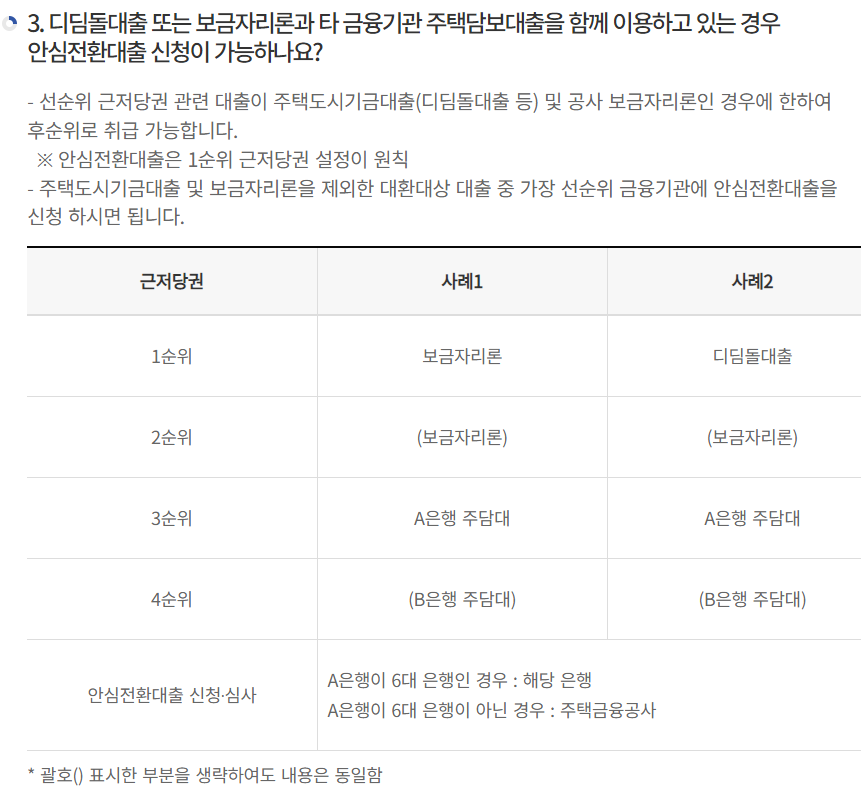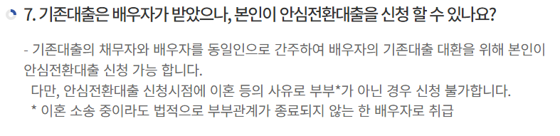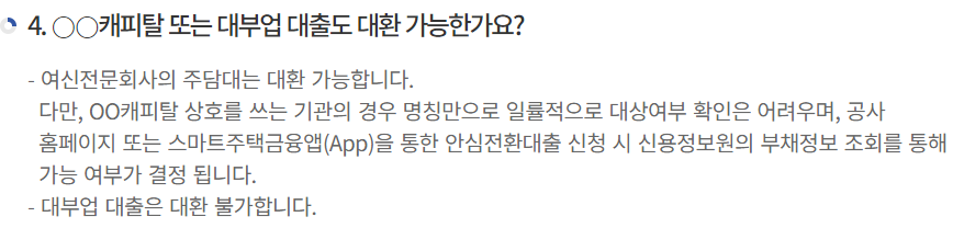 기존에 있던 주택담보대출의 성격이 정책모기지, 고정금리대출 등을 제외한 주택담보대출이어야 대환대출이 가능합니다.