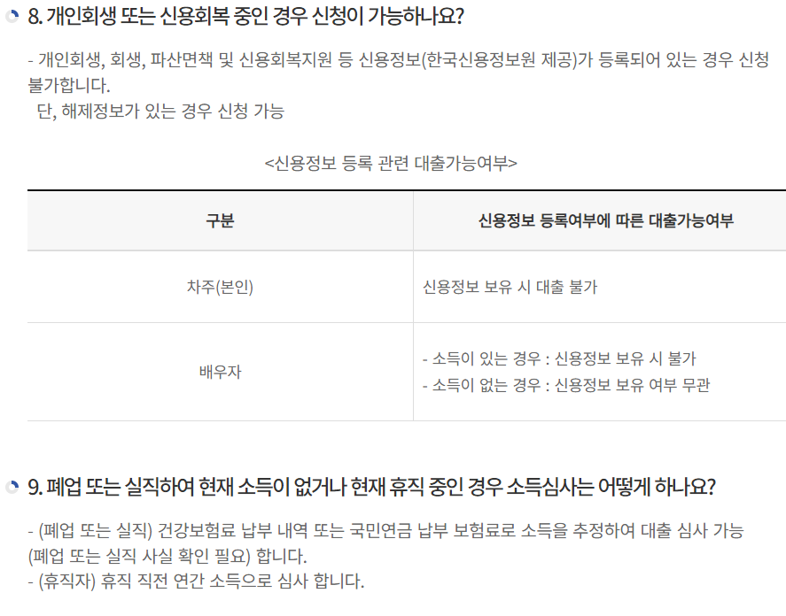 단 한국신용정보원 "신용정보관리규약"에서 정하는 연체 등 신용정보가 남아있는 경우는 취급 불가합니다.