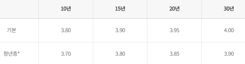 대출금리는 위와 같으며, 청년층의 기준은 소득 6천만원 이하 및 만 39세 이하여야 합니다.