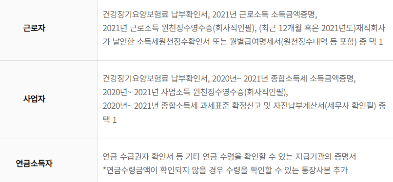 소득 산정은 최근 3개월 건강보험료 납부 확인서, 또는 2021년 소득금액증명원 등으로 최근 1년 소득 산정을 합니다.