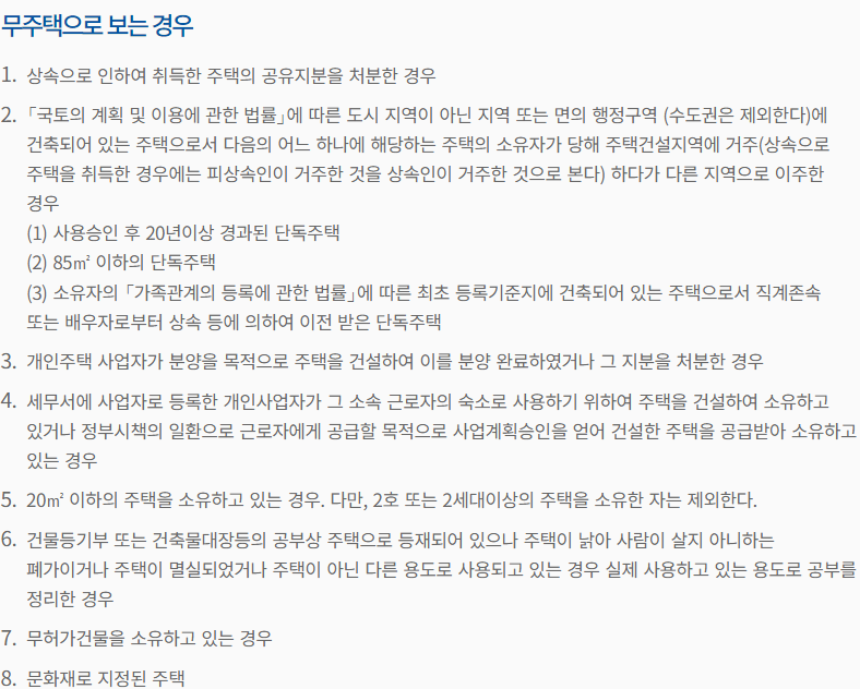 단 아래의 무주택으로 보는 사유에 해당하는 주택은 주택 보유 수에서 제외 검토가 가능합니다.